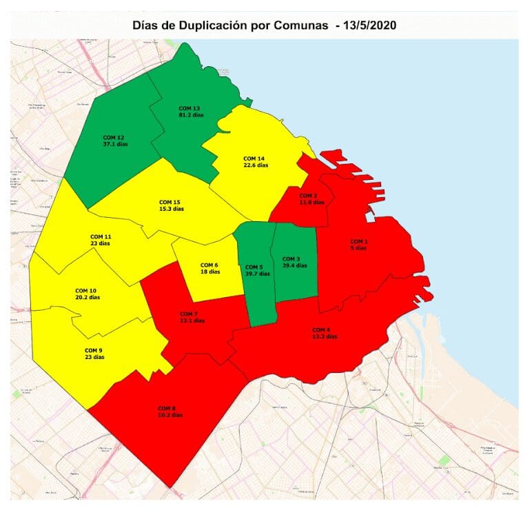 Mientras que en la comuna 13 se duplicaron los casos cada 81 días, en la comuna 1 -donde esta el barrio Padre Mugica, ya hay cerca a los 1.000 infectados- el tiempo de duplicación fue de apenas 5 días. «Lo único que hay que erradicar de las villas es la miseria», decía justamente Mugica, de cuyo asesinato a manos de la triple A se cumplieron esta semana 46 años.