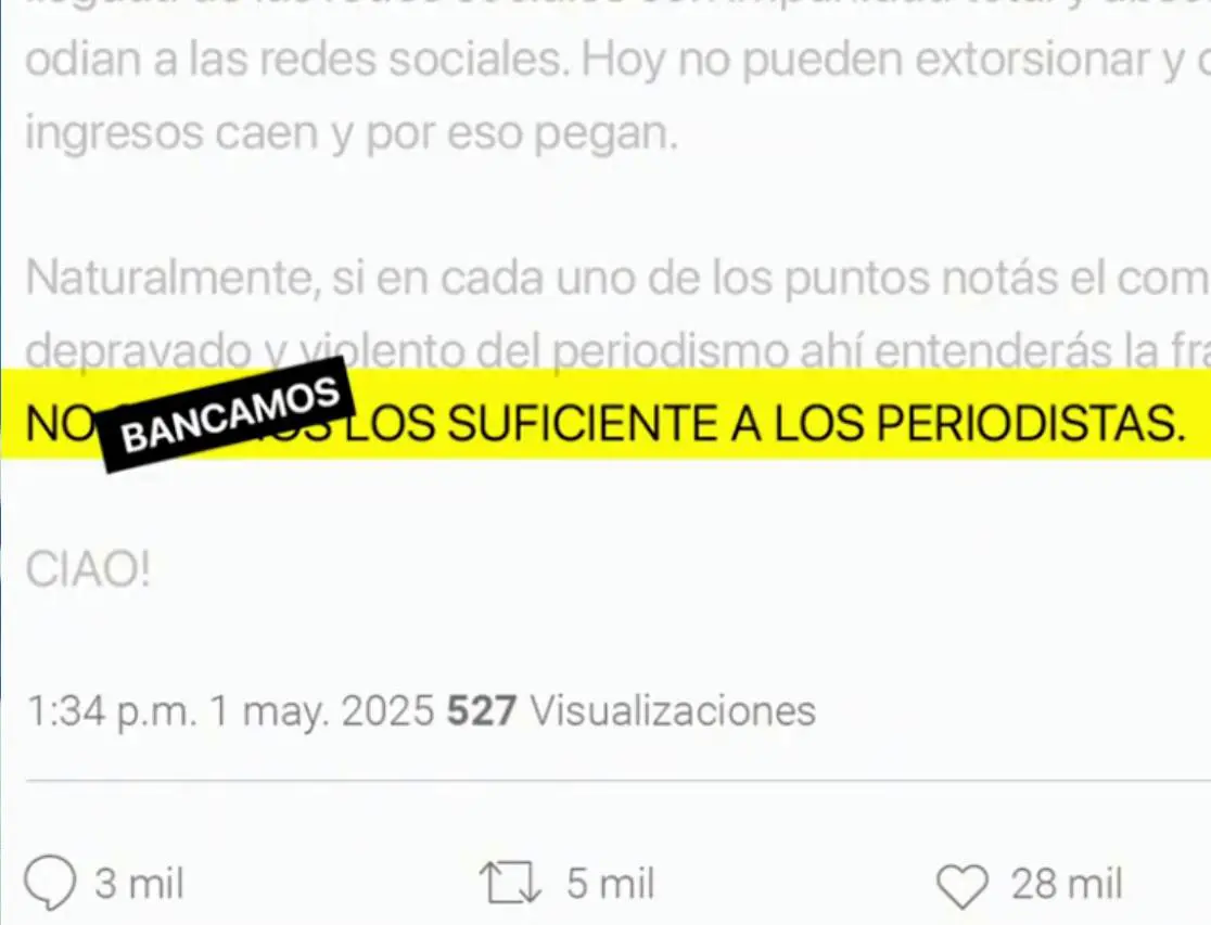 Nacimos un día del periodista y nos gusta repetirlo porque se trata de un gesto reivindicativo que sostenemos. Un gesto que hoy, también, se vuelve fundamental ante la enésima campaña difamatoria impulsada por el gobierno y su ecosistema informativo. Mientras el presidente ficcionaliza entrevistas y convoca a odiar al periodismo, en Cenital resignificamos a Milei: NO BANCAMOS LO SUFICIENTE AL PERIODISMO. Es por eso que invitamos a todos los que crean que una democracia saludable necesita contrapesos a que nos ayuden a ser más fuertes y seguir investigando.