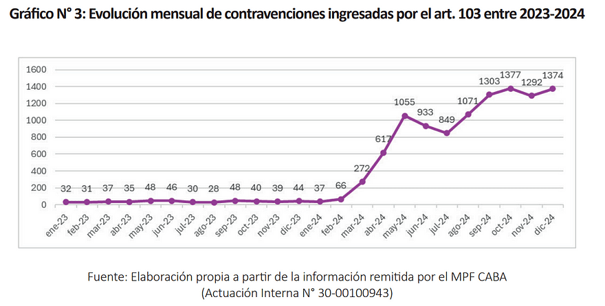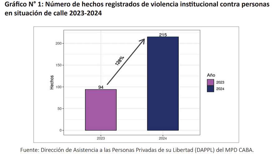 Más allá de que el escándalo provocado lo obligó a bajar el video y pedir disculpas, ese enfoque punitivo no se detuvo. Las denuncias por violencia institucional ingresadas al MPD de la Ciudad aumentaron un 128% entre 2023 y 2024.