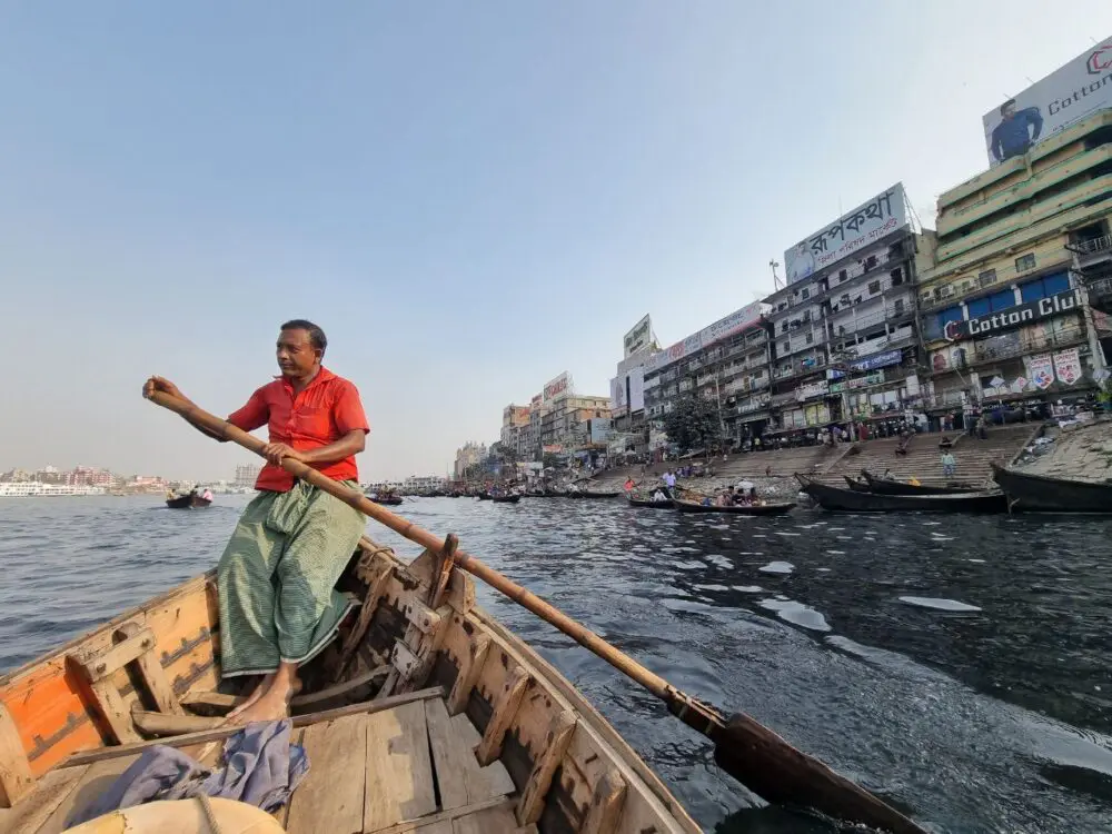 Unas horas después, mientras navegábamos en una pequeña piragua por el río Buriganga, que atraviesa la capital, el hombre me confesó: “Tenías razón, es decididamente suicida manejar acá. Pensé que no había nada más caótico que Hanoi, pero esto lo supera por mucho margen”. Ambos estábamos paseando en botecito, al anochecer del domingo, porque nos quedaban unas horas libres. Al día siguiente, lunes, llegó el canciller Santiago Cafiero a Dhaka e inauguró la embajada argentina, cerrada desde 1977, cuya reapertura tomó un enérgico y definitivo impulso gracias al triunfo en el Mundial.