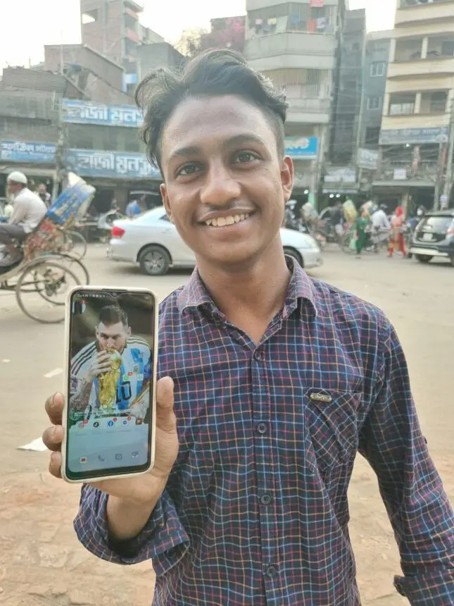 En diez cuadras, y no exagero, me debo haber cruzado con, al menos, 50 camisetas albicelestes, algunas ya con las tres estrellas. Cuando la gente se entera de que sos argentino, en un país muy acogedor pero poco acostumbrado al turismo, te abraza, te felicita, te pide selfies, llaman a sus amigos y amigas, vienen todos. Las banderas argentinas flamean por doquier, a donde se dirija tu mirada: en negocios, en calles, en terrazas, en el transporte público, hasta la vimos en el carrito de un joven que juntaba la basura de la calle (también hay de Brasil, pero mucho menos). No quiero que naturalicemos esto porque no es normal: ¿Cuántas banderas de Bangladesh viste colgadas en tu vida en Argentina? Más aún, ¿cuántas de otros países? Bueno, acá está lleno, llenísimo. Es una pasión fantástica y casi surreal. Y aunque la vida pública continúa siendo predominantemente masculina, vi también a varias chicas jóvenes que me manifestaron su amor por nuestro país y me hablaron de Messi y de Maradona. Todo esto, claro, en medio de los impiadosos bocinazos, del smog, de las calles apiñadas de una ciudad en la que viven 18 millones de personas… ¡Les juro que parece una película, pero es real! Tan real como el Mundial que ganamos en Catar.