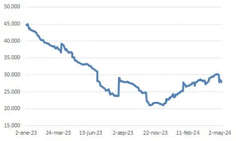 SumateRespecto del tipo de cambio financiero, hay dos regulaciones que son fundamentales para entender la estabilidad observada en este último tiempo. En primer lugar, el hecho de que las (agro)exportaciones se liquiden 80% al dólar oficial y el 20% restante al dólar financiero. El lógico incremento de estas exportaciones que se observó tras el fuerte aumento del 120% en el tipo de cambio no solo sirvió para fortalecer las reservas del BCRA, sino también para mantener planchado el tipo de cambio financiero. ¿Pero alcanza solo con el 20% de lo liquidado? Sí, porque el volumen promedio operado en el mercado financiero es cuatro veces más pequeño que el del oficial, es decir, es solo un 25%.