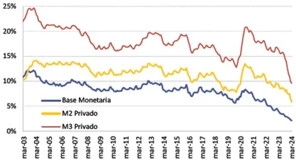 Evolución de los agregados monetarios (como % del PIB):