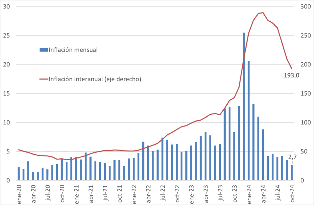 Inflación mensual e interanual de Argentina (%)
