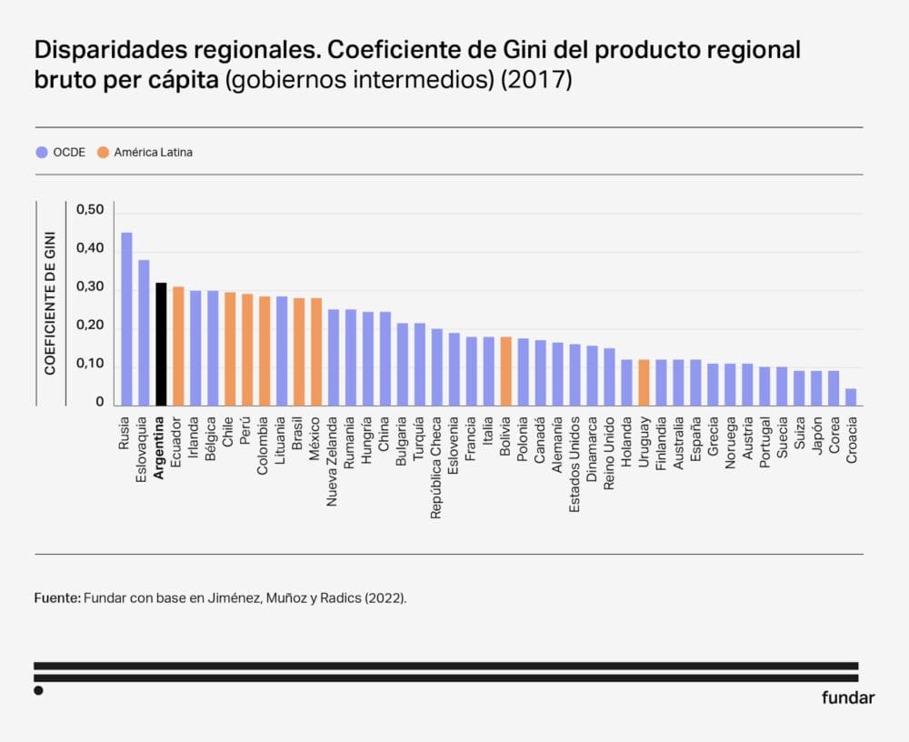 Argentina es uno de los países con mayores disparidades territoriales del mundo. El ingreso por habitante de la Ciudad de Buenos Aires es seis veces mayor que el de algunas provincias del noreste. De esta forma, son muy diferentes las oportunidades de un niño o una niña que nace en un lugar u otro. Es necesario reducir estas desigualdades para tener un país integrado territorialmente y cohesionado socialmente.