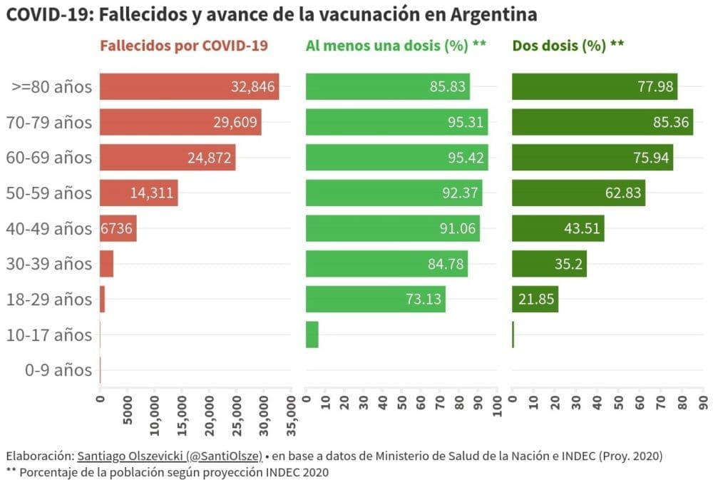 En particular entre los mayores de 50, que representan más del 90% de todas las muertes COVID en Argentina, el 73% ya recibió las dos dosis, y se está avanzando muy rápido en completar esquemas.