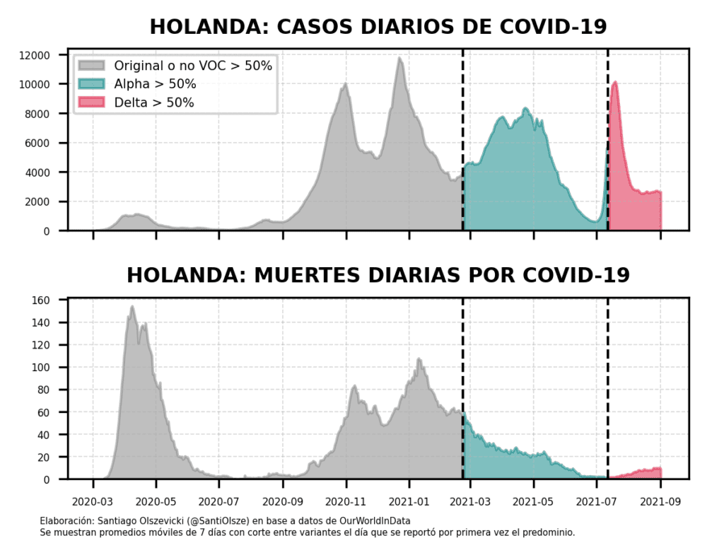 Si Delta va a predominar, y lo más probable parece ser que lo haga, lo esperable, por todos los datos que venimos señalando, sería que una nueva ola venga con muchos casos y relativamente pocas hospitalizaciones y muertes, particularmente entre vacunados. Por eso es tan importante que TODOS se vacunen.