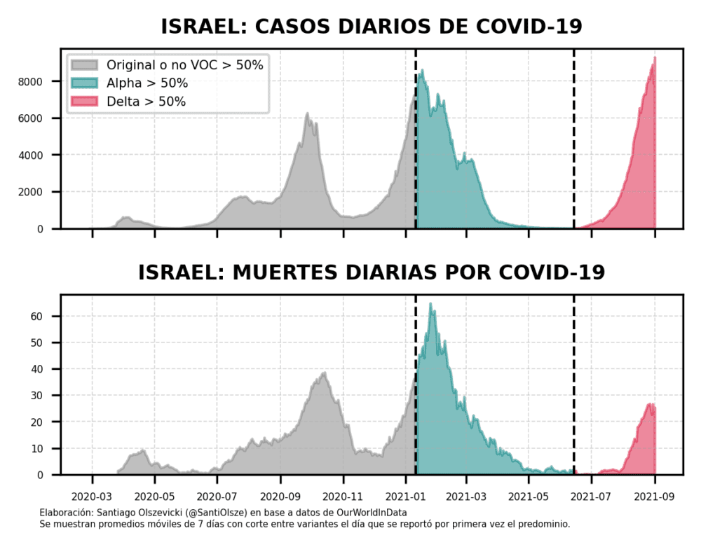 El único caso que parece escapar un poco de esta lógica es el de Israel, sobre el que tendremos que indagar un poco más en otro momento. Sin embargo, tenemos que tener en claro una cosa: la pandemia post-vacunación masiva es, principalmente, un problema de los no vacunados. En los mayores de 60 años de Israel, 17 de cada 100.000 vacunados con dos dosis está cursando enfermedad grave de coronavirus. En los vacunados con una dosis, 40 de cada 100.000. En los no vacunados, la cifra se multiplica: hay 282 casos graves cada 100.000 habitantes. Y aún allí, la ola de Delta en muertos está muy por detrás de la de Alpha, con más movilidad.