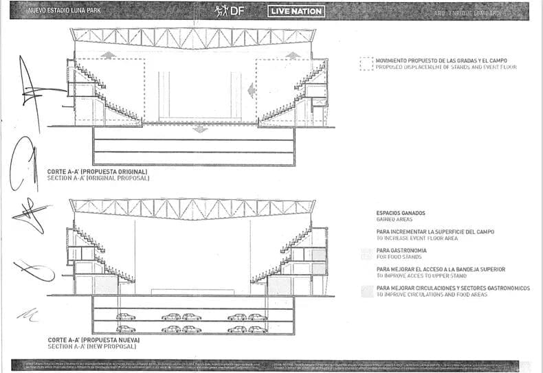 Un dato que me llamó la atención de la propuesta de DF Entertainment fue la idea de construir un doble estacionamiento subterráneo en una de las zonas mejor conectadas de toda la ciudad de Buenos Aires. A metros del estadio ya pasan dos líneas de subte (la estación Alem de la línea B y Correo Central, de la E) y 38 líneas de colectivos. ¿Qué sentido tiene llegar con el auto propio a un estadio de 13 mil espectadores que obligue a todos a salir del espectáculo a la misma hora, generando bocinazos, mal humor y un atasco monumental?