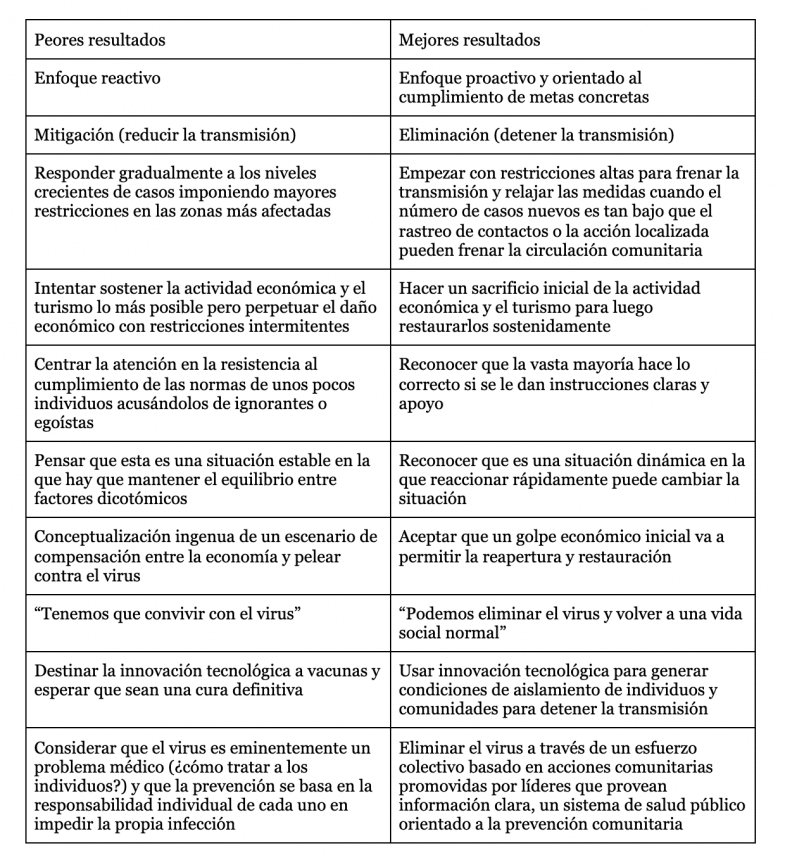 - Vacuna y todo, los cuidados seguirán siendo de la partida por un rato más. Esto significa tanto responsabilidad pública como privada. Respecto a lo primero, este hilo del físico especialista en pandemias Yaneer Bar Yam resume algunas diferencias entre estrategias ineficientes y eficientes para lidiar con la pandemia comparando entre países.