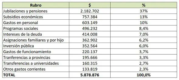 Gasto público del Gobierno nacional acumulado 2022 (en millones de $ y en % del total)