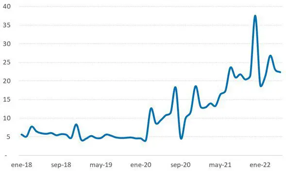 Si extendemos el análisis y miramos lo sucedido tras la salida de la pandemia con la ampliación del programa Potenciar Trabajo, podemos advertir que acá también se observó un fuerte incremento en esta partida, cuyos principales beneficiarios, como vimos, son los movimientos sociales. El gasto (medido en términos reales) se multiplicó por cinco desde el fin de la gestión de Cambiemos.