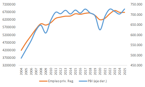 Evolución del PIB y del empleo privado registrado