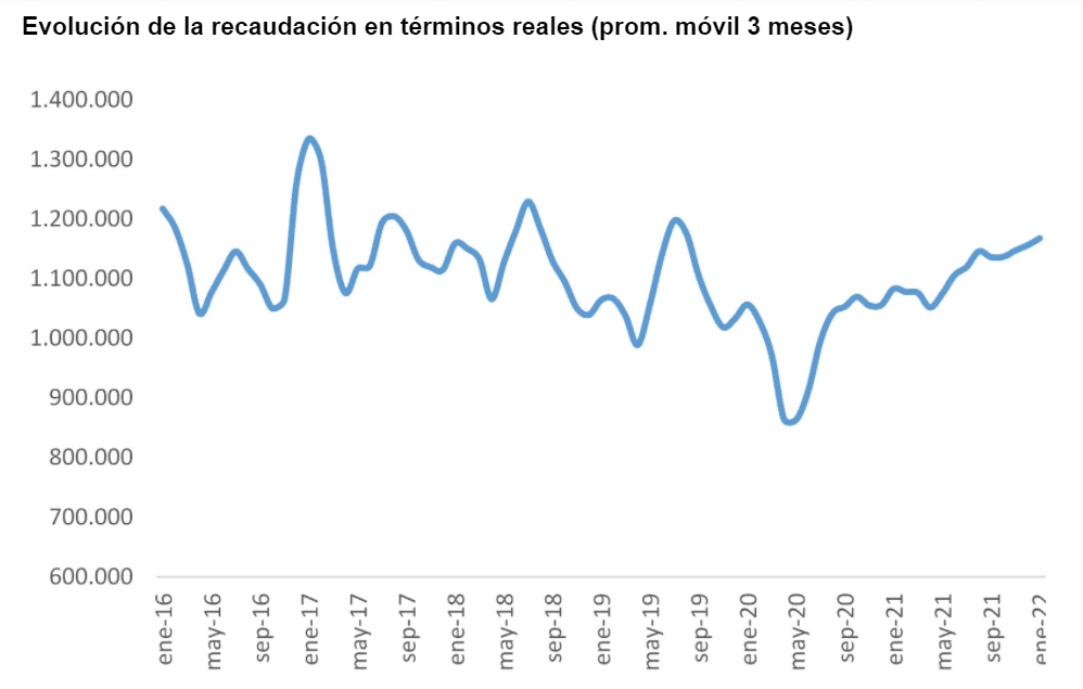 La recaudación tributaria mantuvo la senda alcista en enero, aunque se desaceleró significativamente y el incremento en términos reales fue solo del 1%. La recuperación sostenida de los ingresos tributarios hizo que en la actualidad supere los niveles promedios de los últimos cinco años. Asimismo, esto es un dato clave para la reducción del déficit fiscal.