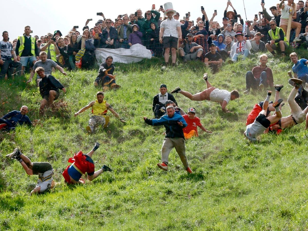 Cada mayo, desde al menos 1826, se celebra en Gloucester, Reino Unido, el Festival del queso rodante. Es una carrera en la que se hace rodar una horma de queso en una colina empinada y los competidores tienen que correr detrás de ella. Gana el primero en llegar. Se pone intenso.