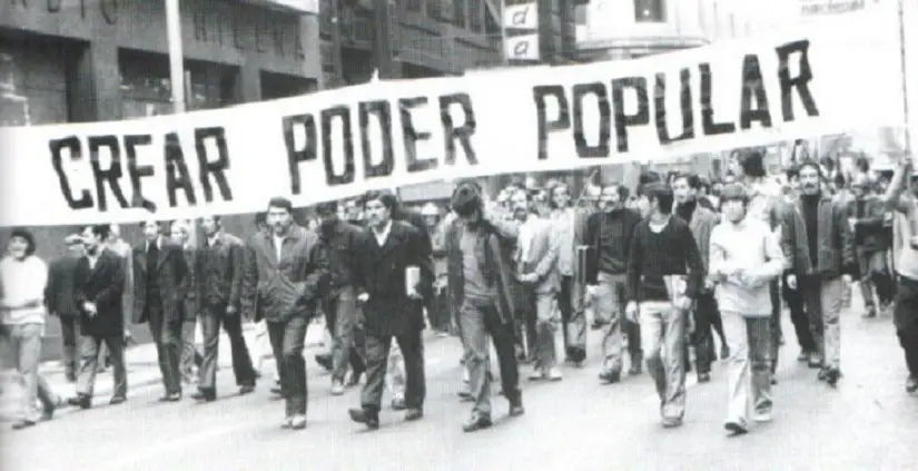 SumateA la par del conflicto con las patronales, el gobierno de Unidad Popular enfrenta también desafíos de lo que considera su propia base social, los trabajadores. Las tomas de fábricas se convierten en algo más que una herramienta de lucha. Bajo la influencia del MIR, el movimiento de pobladores (que nuclea a colectivos de sectores urbanos que vivían en las periferias de las ciudades, bajo condiciones de gran precariedad económica) realiza varias acciones radicales en el centro de Santiago de Chile. Hay bloqueo de caminos, movilizaciones que terminan en tomas de tierras y ocupación de ciertos edificios gubernamentales a modo de protesta por la velocidad de las reformas.