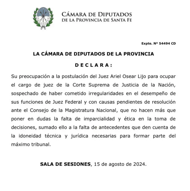 La sesión por el DNU de fondos reservados está en el medio de una semana que puede ser, en términos legislativos, áspera para el Gobierno: en el Senado quedó pendiente la ley para actualizar las jubilaciones, además de la audiencia del 21 de agosto por la postulación del juez Ariel Lijo para la Corte. El jueves, la Legislatura de Santa Fe aprobó, por unanimidad, un proyecto para declarar la preocupación por la designación de Lijo. Es inédito y simbólico: de Santa Fe son los supremos Horacio Rosatti y Ricardo Lorenzetti, este último señalado como el hombre que le llevó a Milei y Caputo el nombre de Lijo con la propuesta de “construir una mayoría propia” en el máximo tribunal.