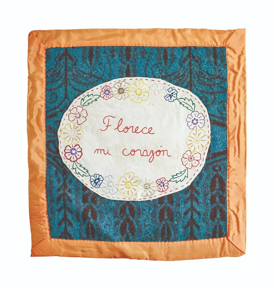 Para ilustrar, me decidí por Feliciano Centurión, un artista paraguayo que hizo su carrera entre Asunción y Buenos Aires, y que murió a los 34 en 1996 por complicaciones con su VIH. Descendiente de una familia de bordadoras, Centurión se trasladó a la Argentina a mediados de la década de 1970. En su obra trabaja con tejidos, frazadas y telas y expresa sobre esos textiles su historia personal. Para él “la frazada es un objeto cotidiano, rápidamente aceptado. Calor. Abrigo, protección. Soporte afectivo sensorial”. Por eso las usó como soportes de dibujos y tejidos acolchados. Inspirado en técnicas de tejido guaraní, pero con una estética queer, en sus obras bien coloridas llenas de ribetes dejó mensajes que siguen resonando. Es que estas telas y algunos objetos pequeños que intervenía se fueron transformando en una suerte de diario íntimo a partir de la incorporación de frases o breves poemas que hablan del amor, el deseo y la enfermedad. Me parece muy conmovedor ese gesto de bordar palabras para el futuro, porque adquieren nuevos sentidos cuando se las piensa como legado. Sabiendo o no que iba a morir, Centurión eligió decirnos cosas de la vida antes de irse de ella. Por suerte su obra sigue vibrando en distintas bienales y museos nacionales e internacionales, más actual que nunca.