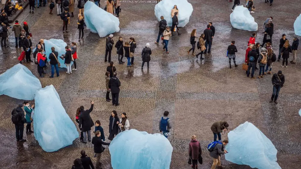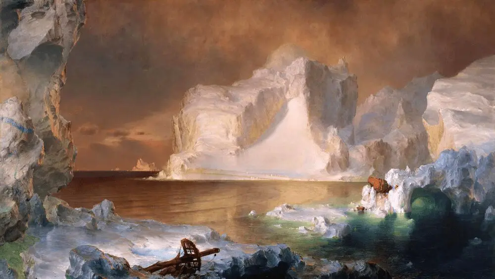 En la pintura, Church transmite la sensación capturada en las palabras de un amigo que lo acompañó en la expedición para bocetar el paisaje: «Después de todo, qué endeble es el hombre en presencia de estas maravillas del Ártico». En la instalación, que consistió en el traslado al centro de Londres de más de dos docenas de bloques de hielo que se habían desprendido de la placa de hielo de Groenlandia y flotaban a la deriva con la intención de que, ante su derretimiento, los transeúntes pudieran ver por sí mismos la situación del Ártico. En menos de 150 años, la fragilidad pasó de nosotros al hielo.