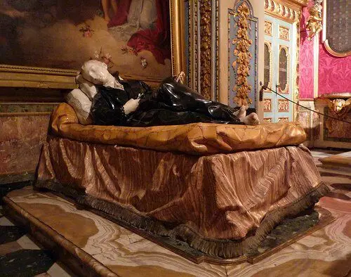 Ginzburg quiere dar entonces el último paso. Decir que hay en el cuadro de Marat otra influencia que David había absorbido en su juventud: el rococó (o barroco tardío). Tiene sentido, dice, en que David había vivido en Roma. Allí había visto la estatua que Pierre Legros le hizo a Stanislas Kostka, un jesuita polaco muerto en 1567 y luego santificado.