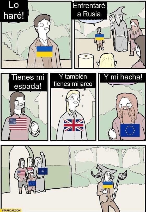Ahora sí: memes. Hay gente discutiendo sobre sí está bien hacer y compartir memes sobre la guerra. Eso de base implica reconocer que estos se convirtieron en una fuente de información –y distorsión– en el conflicto. Y eso para no hablar de su rol en nuestra vida cotidiana. Yo estoy con las voces que defienden su proliferación aun en una guerra. Algunos argumentan que se trata de una manera de simplificar y entender mejor lo que está pasando. Otros simplemente dicen que es una forma de lidiar con estas crisis, ni más ni menos reprobable que otra. Insisto: no puedo estar más a favor.