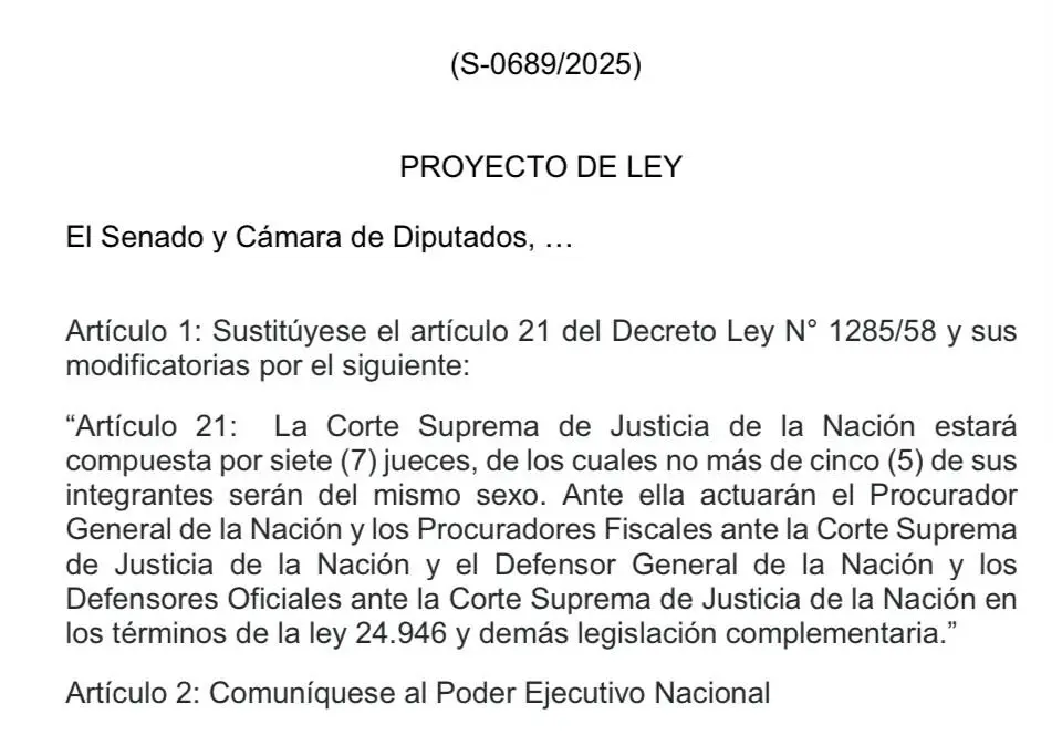 La teoría que sostiene que detrás del derrumbe de Ficha Limpia hay un acuerdo entre Milei y CFK se nutrió de un hecho curioso: el jueves, el senador Juan Carlos Romero, más oficialista que muchos libertarios, de diálogo directo con Caputo y un intermediario entre LLA y el PJ, presentó un proyecto de ampliación de la Corte Suprema a 7 miembros con cupo de género: no puede haber más de 5 de un mismo sexo. Ha sido, hasta acá, uno de los pedidos del peronismo para avanzar hacia un acuerdo integral.