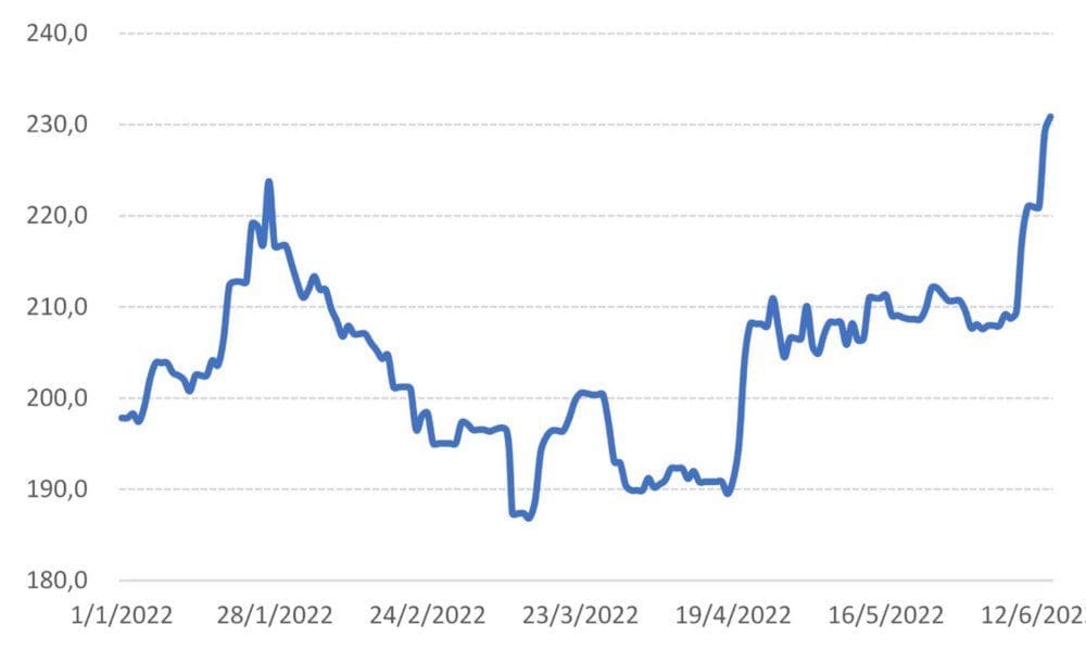 Asimismo, el pánico financiero también se trasladó al dólar financiero, que luego de varios meses de estabilidad pegó un salto del 11% en la última semana, superando los 230 $/USD.