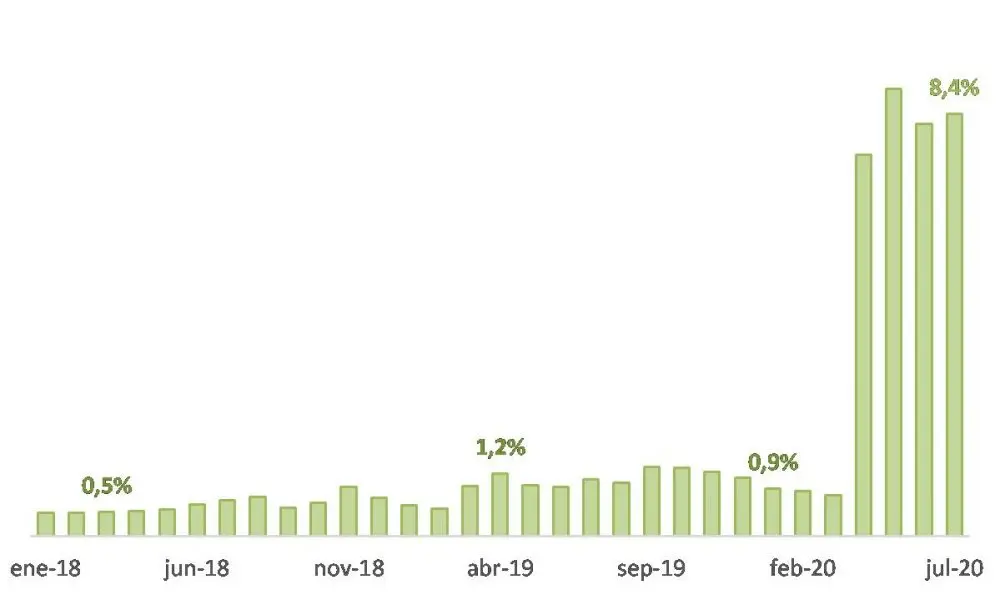 Evolución de los trabajadores suspendidos (como % del total relevado)