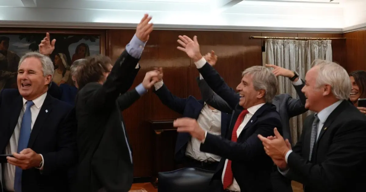 Del piso de la banda a 600 pesos pronosticados por Javier Milei a estos 1000, de la salida del cepo cuando la inflación esté en cero a hacerlo en un 3,7%, de un índice que comenzaría con 1 en abril a la expectativa del 4, de la palidez de la semana pasada a la sobreactuación vía un cosplay del Lobo de Wall Street en la foto difundida por Presidencia. Los festejos al cierre de la jornada financiera fueron estruendosos. El primate elegido para el antagonismo metafórico era nuevo y a la rima le faltaba la chispa que supo construir a lo largo de décadas el peronismo, pero la arenga con aires futboleros y menciones rencorosas a Clarín y La Nación no hubiera quedado fuera de lugar en el kirchnerismo de 2013, luego de alguna victoria legislativa: “Mandril, decime qué se siente”. En el Ministerio de Economía –y con el presidente a la cabeza–, reinó la euforia tras la primera jornada de pleno funcionamiento del acuerdo con el Fondo Monetario Internacional.